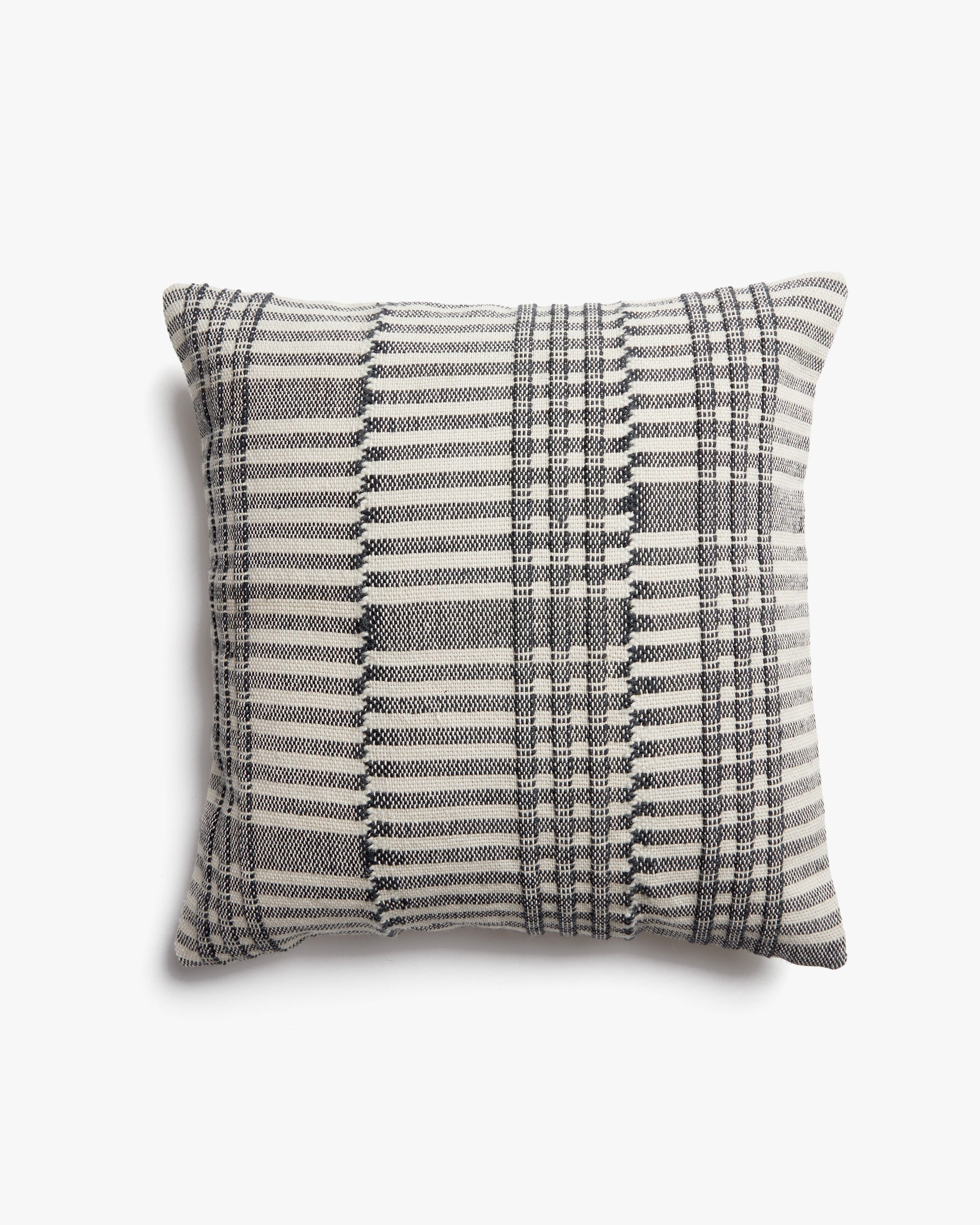 The right pillow can pull a room together. This easy-to-stye artisanal cover will add a touch of subtle texture to your bed, sofa or favorite chair. The jacquard-woven pattern brings to mind vintage Japanese or Scandinavian weavings – modern, sophisticated and effortless.